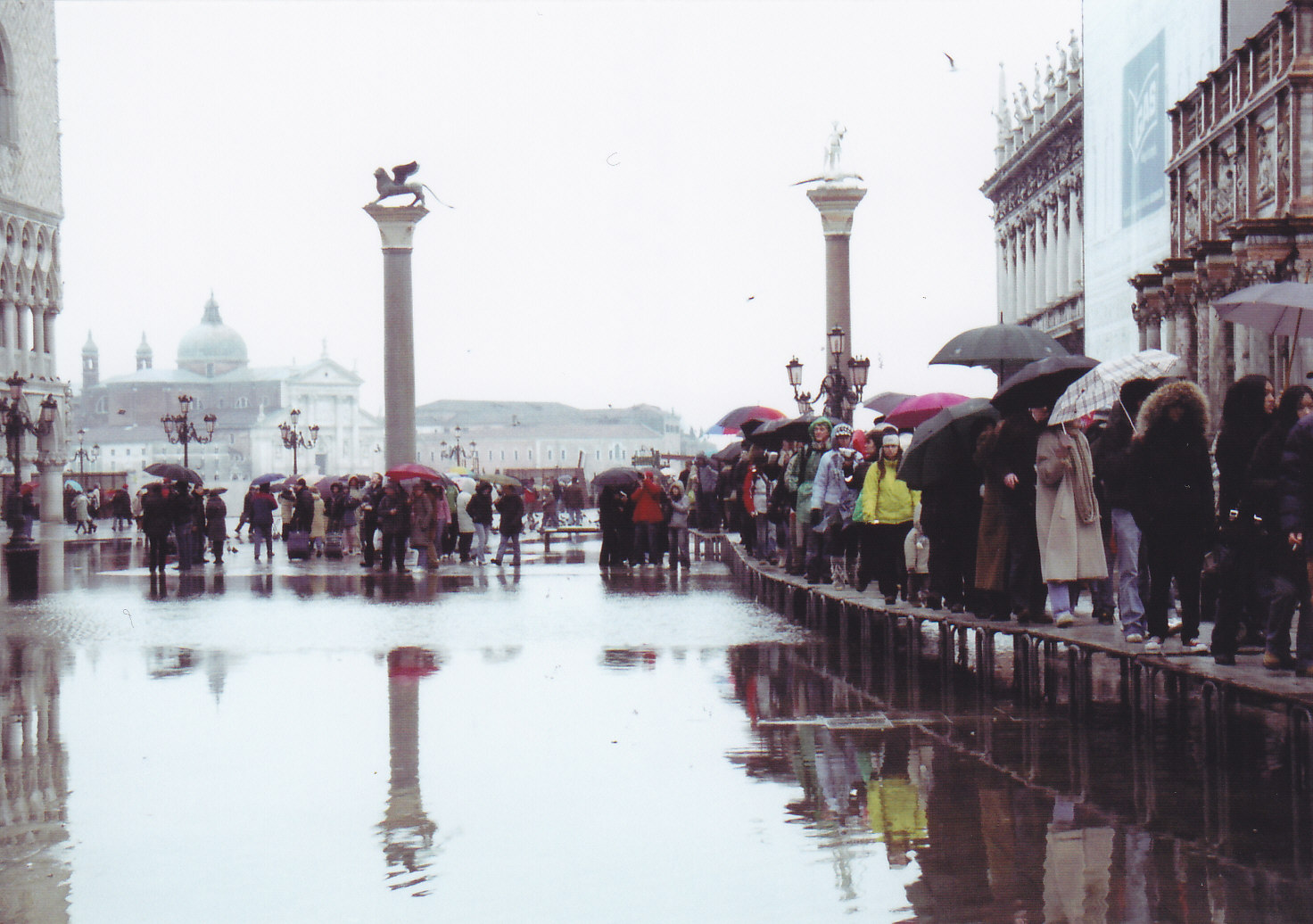 食事後、サン・マルコ広場に戻ってくると、広場が水に覆われていました。